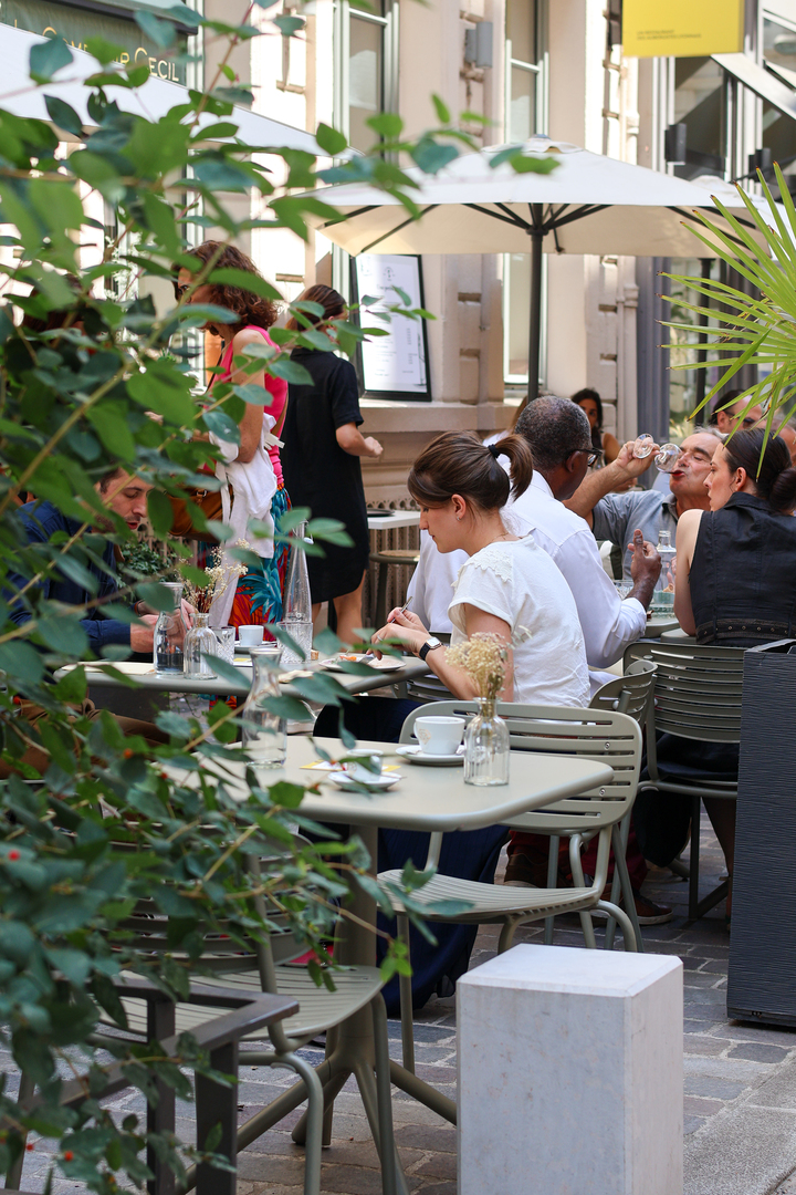Comme à l’abri de l’effervescence lyonnaise, notre terrasse vous transporte dans une bulle secrète où le temps semble s’étirer. Calme et idéalement située, elle est parfaite pour un déjeuner au soleil ou pour une pause chocolat chaud. Le tout en plein cœur de Lyon.